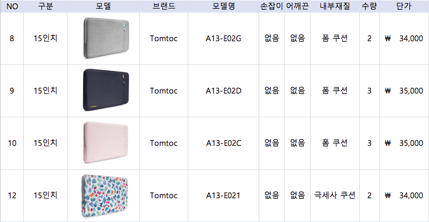 노트북 파우치 스펙 확인 링크