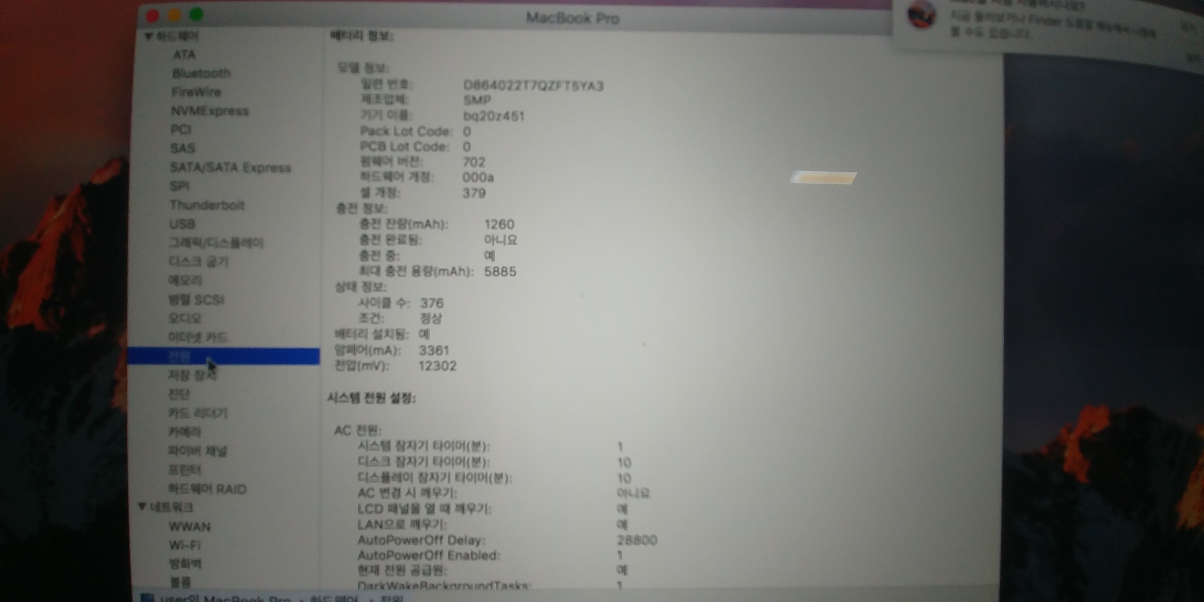 배터리 사이클 376  최대충전용량 5885