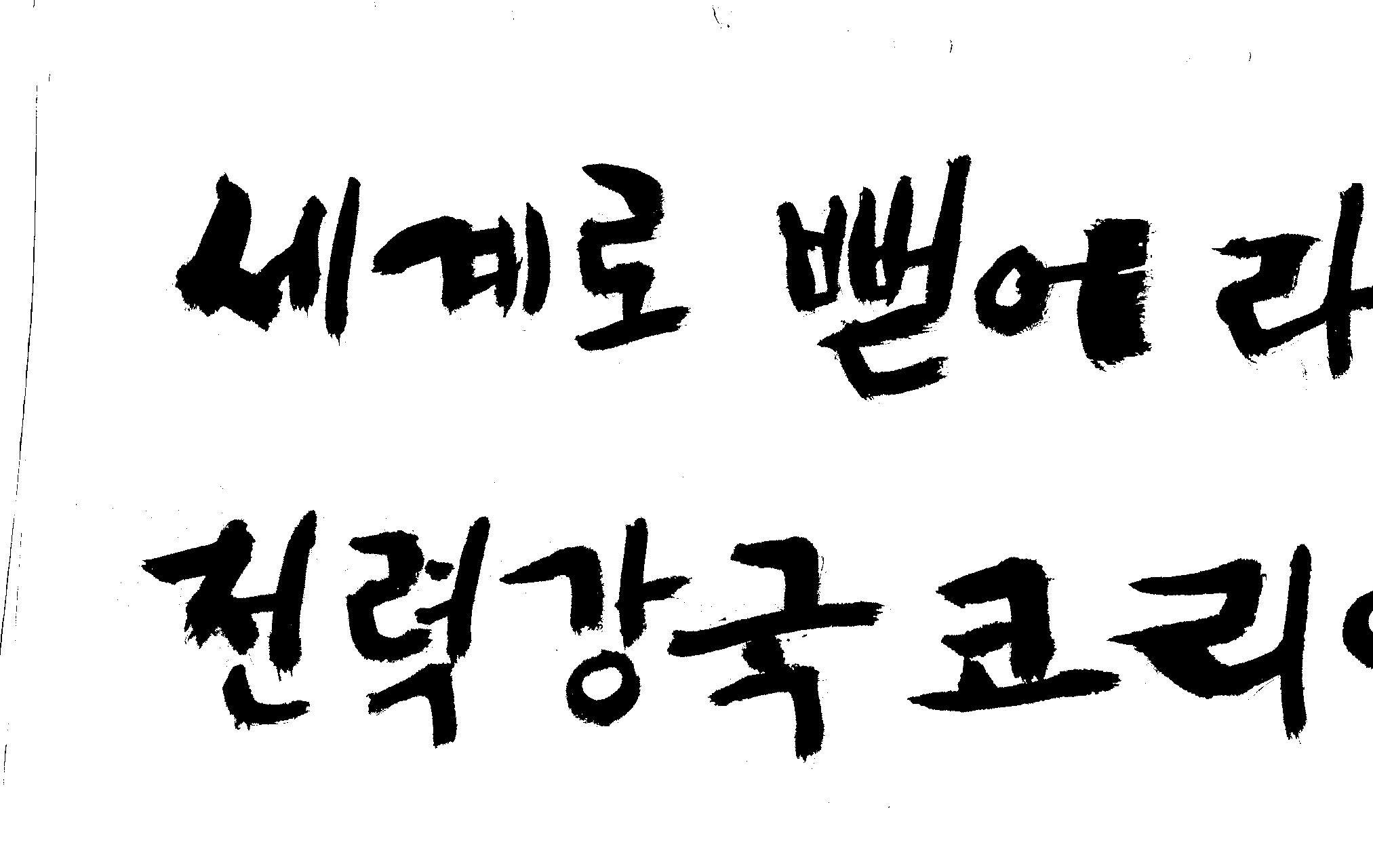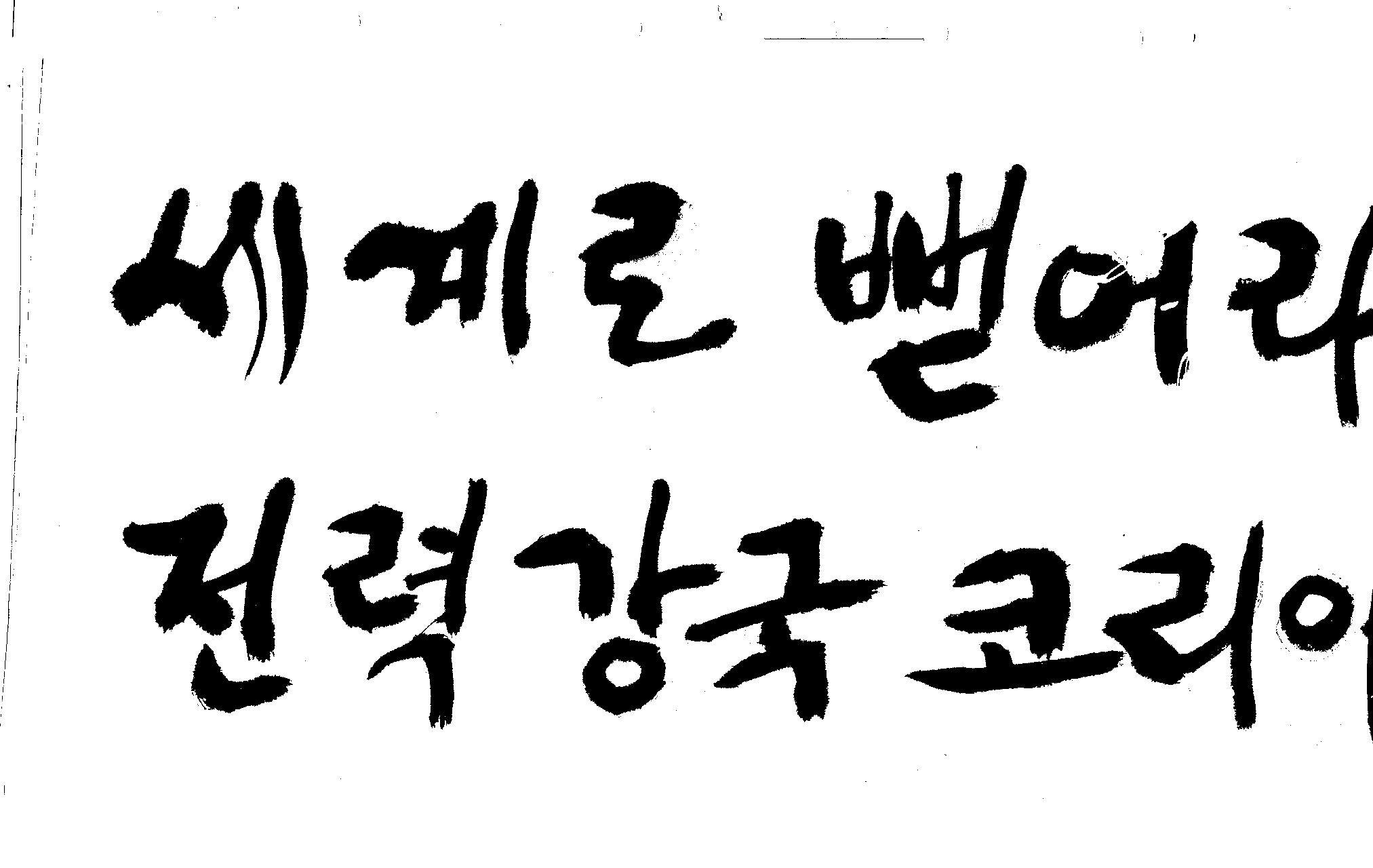 캘리 좀 부탁드려요!~ 김철호 일반 1 12602 2008.12.24 12:09 > > > > > > > > > 전력회사 신문광고를 하는데요 캘리로 멋지게 하고픈데 > > > 캘리프로그램으로 아무리 써도 느낌이 안나옵니다 ㅜ.ㅜ > > > 이런걸 부탁한다는 자체가 너무나도 염치없지만 부탁드립니다. > > > > > > 세계로 뻗어라! 전력강국 코리아 > > > > > 보기는 쉬워도 하기는 어려운게 > > 세상 모든 일 일겁니다. > > 그중에 캘리그라피가 그런 것일 겁니다... > > 스캔중에 글꼴이 잘린것은 서로다른글꼴서 편집하시길... > > 글수가 많아서 어쩔 수없네요... > > >